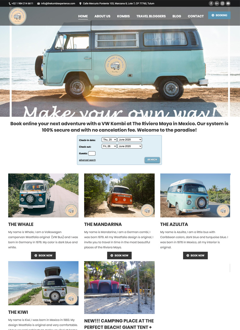 Estamos muy felices de haber conocido a Ekualia ya que nos ha ayudado en todo! Desde la creación de nuestro logo, pasando por nuestra fantástica pagina web, hasta la selección e implementación del sistema de reservas para nuestras kombis vw en Mexico.read more